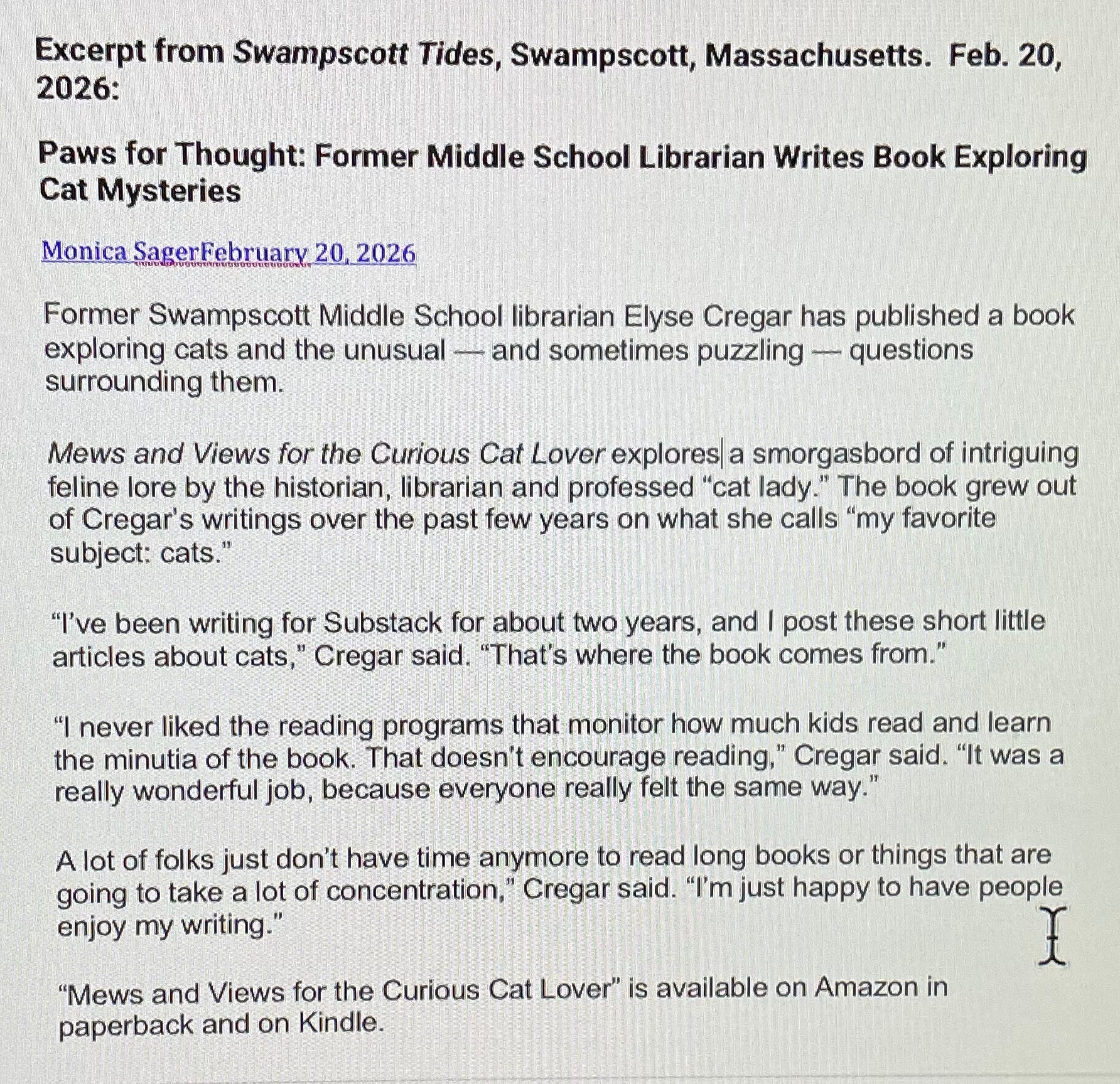Mews and Views for The Curious Cat Lover by Elyse Cregar.